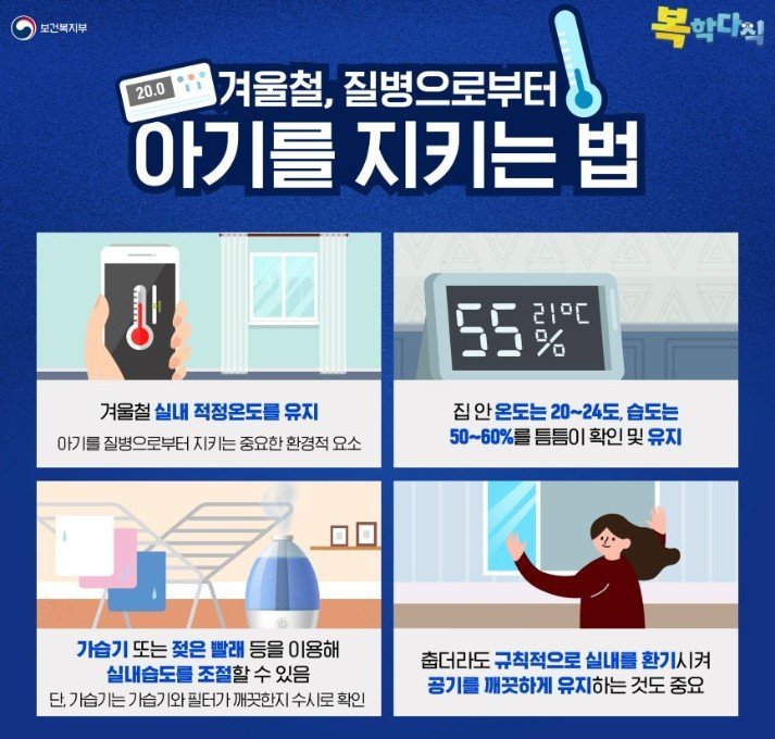 질병관리청은 겨울철 실내 적정 습도를 40~60%로 유지하는 것이 호흡기 건강에 도움이 된다고 안내하고 있다.