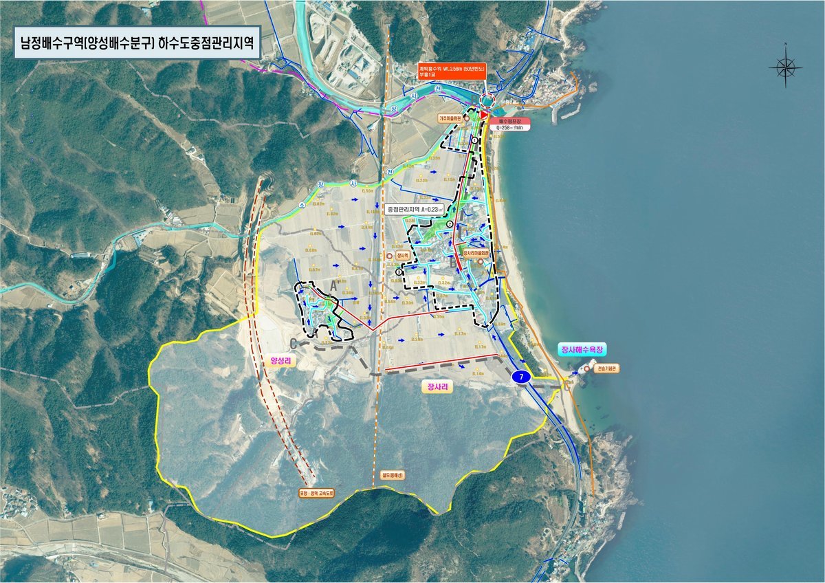 남정면 장사리, 양성리 일대는 호우시 침수가 잦은 지역으로 지난 2024년 환경부로부터 하수도 정비 중점 관리지역으로 지정돼 국비 136억원, 총사업비 227억원을 투입해 ‘남정 배수구역 하수도 정비 사업’을 추진하고 있다.