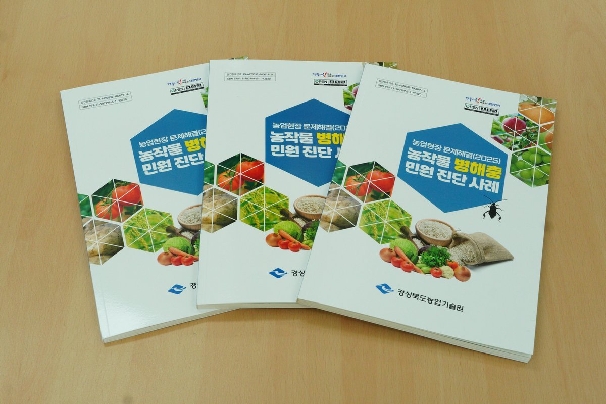 [금요저널] 경상북도농업기술원은 도내 농업 현장에서 발생하는 작물의 문제 병해충 등 민원에 대한 진단과 대처방안 제시 사례를 모은‘농업현장 문제해결 2025 농작물 병해충 민원 진단 사례’책자 1000부를 발간해 23일 도내 시군농업기술센터와 관계기관, 농업인들에게 배포한다.