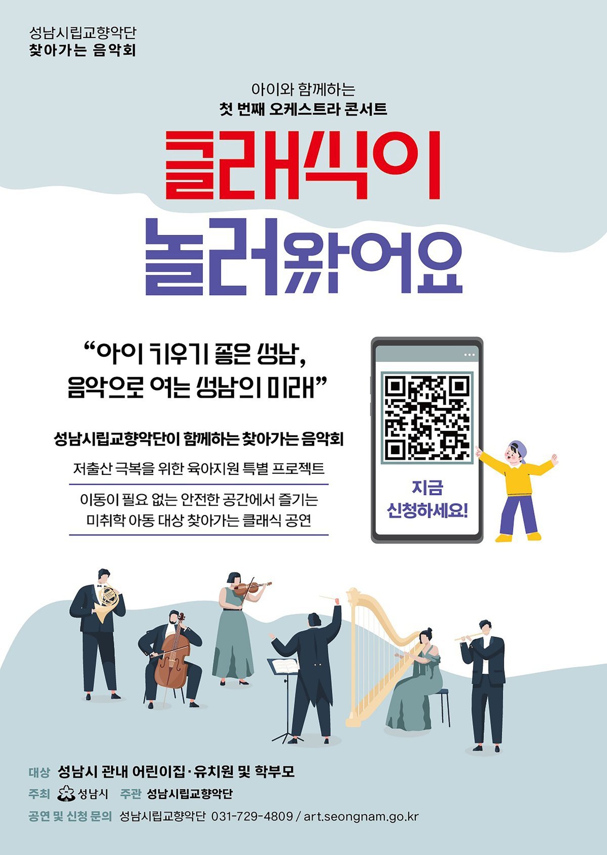 성남시립교향악단 영유아 대상 클래식이 놀러왔어요 음악회 신청 안내 포스터 성남시 제공
