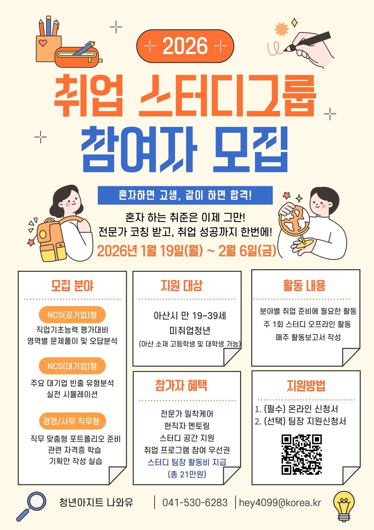 [금요저널] 아산시는 취업을 준비하는 청년들의 역량 강화를 지원하고 공통의 목표를 가진 청년 간 정보 공유를 활성화하기 위해 ‘2026년 청년 취업스터디그룹 지원사업’참여자를 모집한다고 밝혔다.