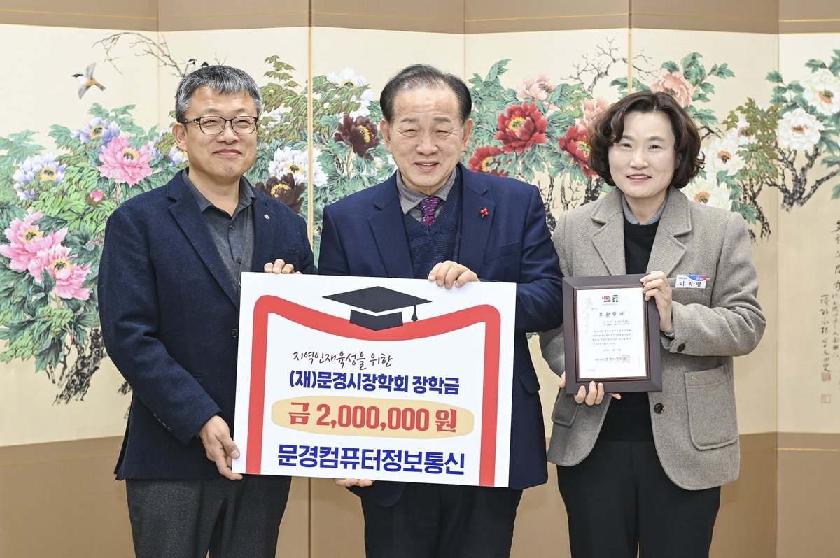 [금요저널] 문경시장학회는 지난 22일 지역인재 육성을 위한 장학금으로 대평개발에서 300만원을, 문경컴퓨터정보통신에서 200만원을 각각 기탁받았다.