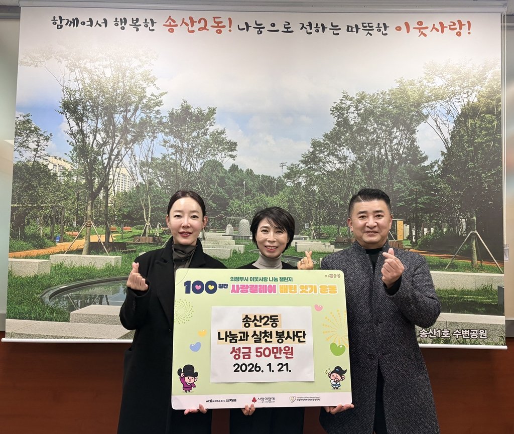 [금요저널] 의정부시 송산2동주민센터는 1월 21일 나눔과실천 봉사단이 성금 50만 원을 기탁했다고 밝혔다.