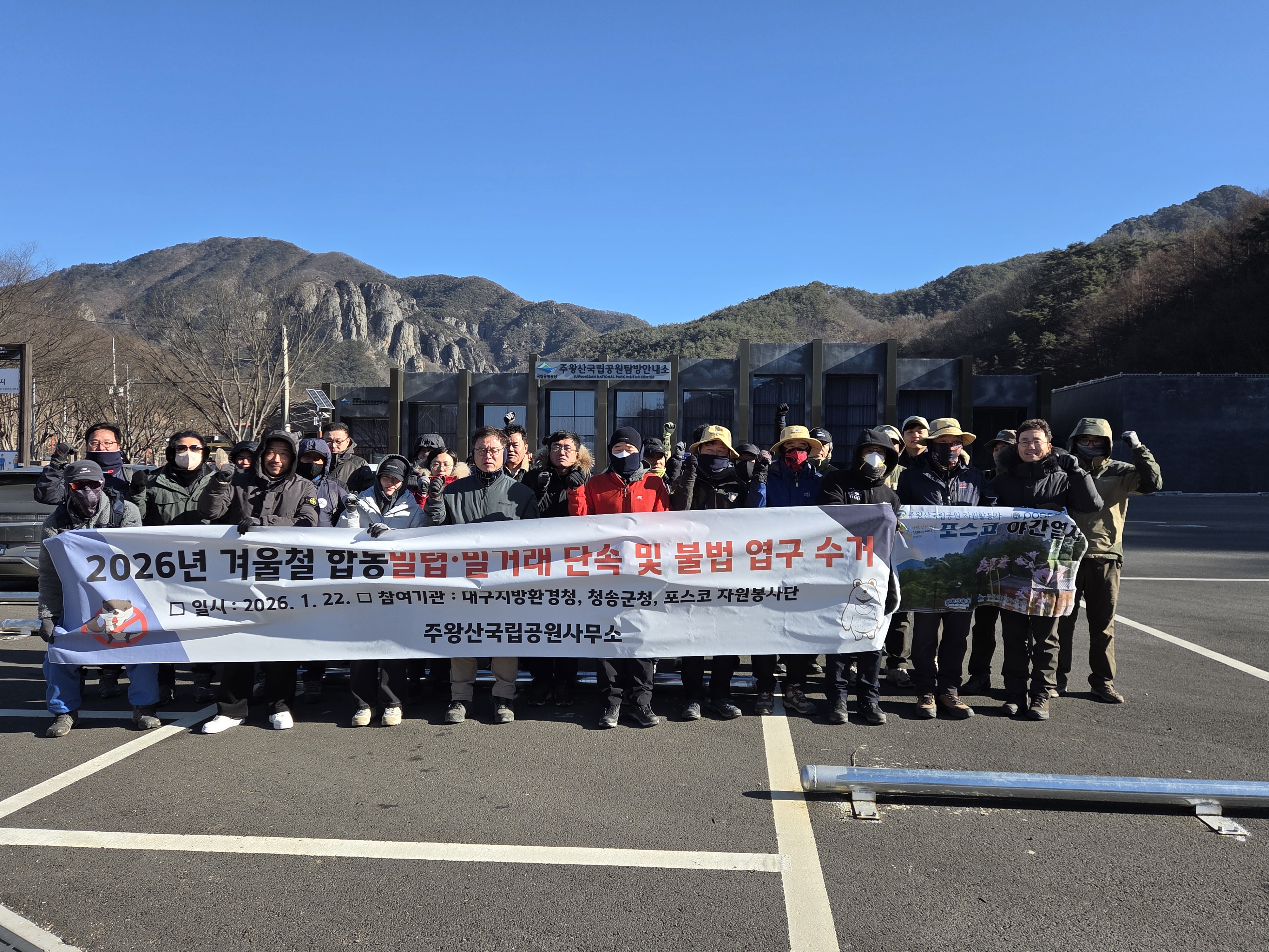국립공원공단 주왕산국립공원사무소(소장 안호경)는 지난 1월 22일 주왕산면 상의리 일원에서 국립공원 내 야생동물 서식지 보호를 위한 유관기관 합동 불법엽구 수거 행사를 가졌다고 밝혔다.