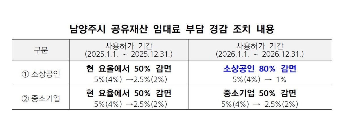 감면 대상은 시 소유 공유재산을 임차해 운영 중인 소상공인과 중소기업이며 감면 적용 기간은 2025년부터 2026년까지 2년이다.