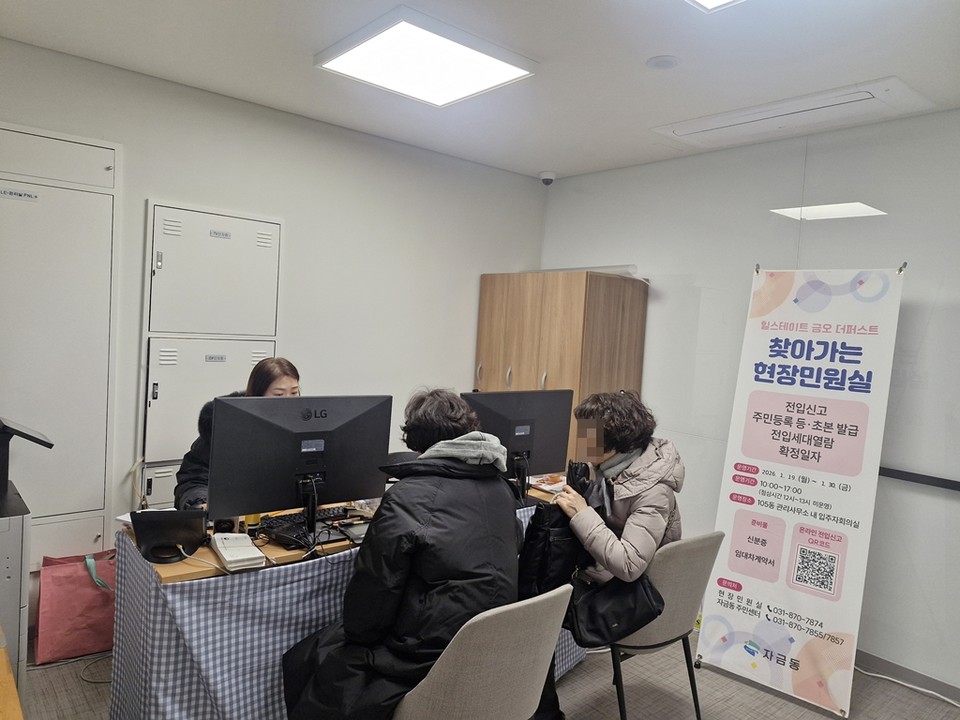 의정부시 자금동주민센터는 힐스테이트 금오더퍼스트 신규 입주민들의 뜨거운 호응과 연장 요청에 따라 당초 19일까지 운영 예정이었던 ‘찾아가는 현장 민원실’을 오는 30일까지 연장 운영한다.