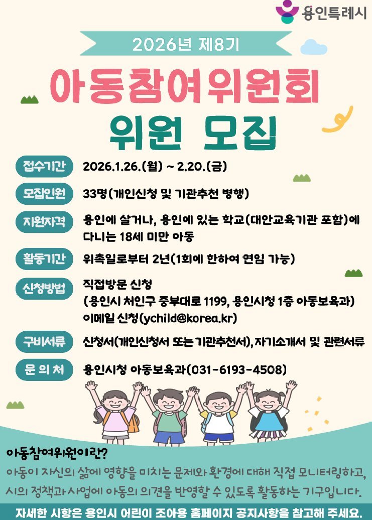 용인특례시가 제8기 아동참여위원회 위원을 모집한다