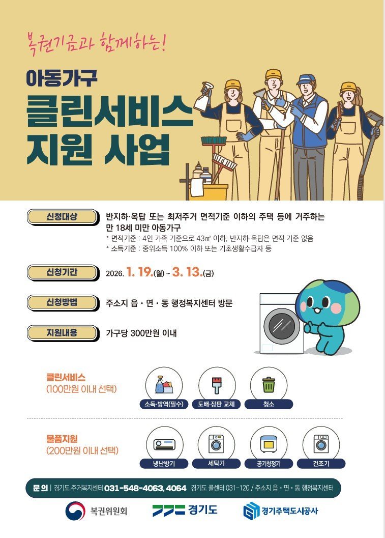 복권기금과 함께하는 아동가구 클린서비스 지원사업 홍보물