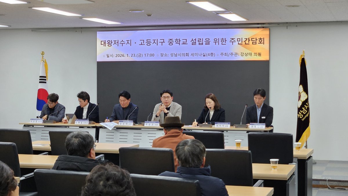 [금요저널] 경기도의회 교육행정위원회 문승호 의원이 지난 1월 23일 성남시의회에서 진행된 '대왕저수지·고등지구 중학교 설립 주민 간담회'를 통해 집행부에 고등지구 중학교·대왕저수지 수변공원 설립에 대한 지역 주민들의 의지를 전달하고 신속한 추진을 주문했다.