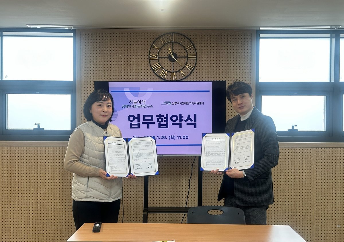 남양주시장애인가족지원센터–하늘아래장애인사회문화연구소, 장애인가족 복지 증진 위한 업무협약 체결 (남양주시 제공)