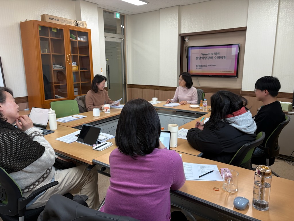 이날 장진이 대구가톨릭대학교 심리학과 교수를 수퍼바이저로 초빙해 Wee센터와 관내 Wee클래스에서 진행되고 있는 위기상담 사례와 상담과정을 분석하고 향후 효과적인 개입 방안을 모색하는 시간을 가졌다.