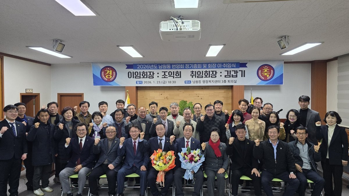 [금요저널] 상주시 남원동 번영회는 2026년 1월 23일 오후 6시 30분, 남원동 행정복지센터 3층 회의실에서 1월 정기총회 및 회장 이·취임식을 열고 김갑기 신임 회장의 취임을 공식화했다.
