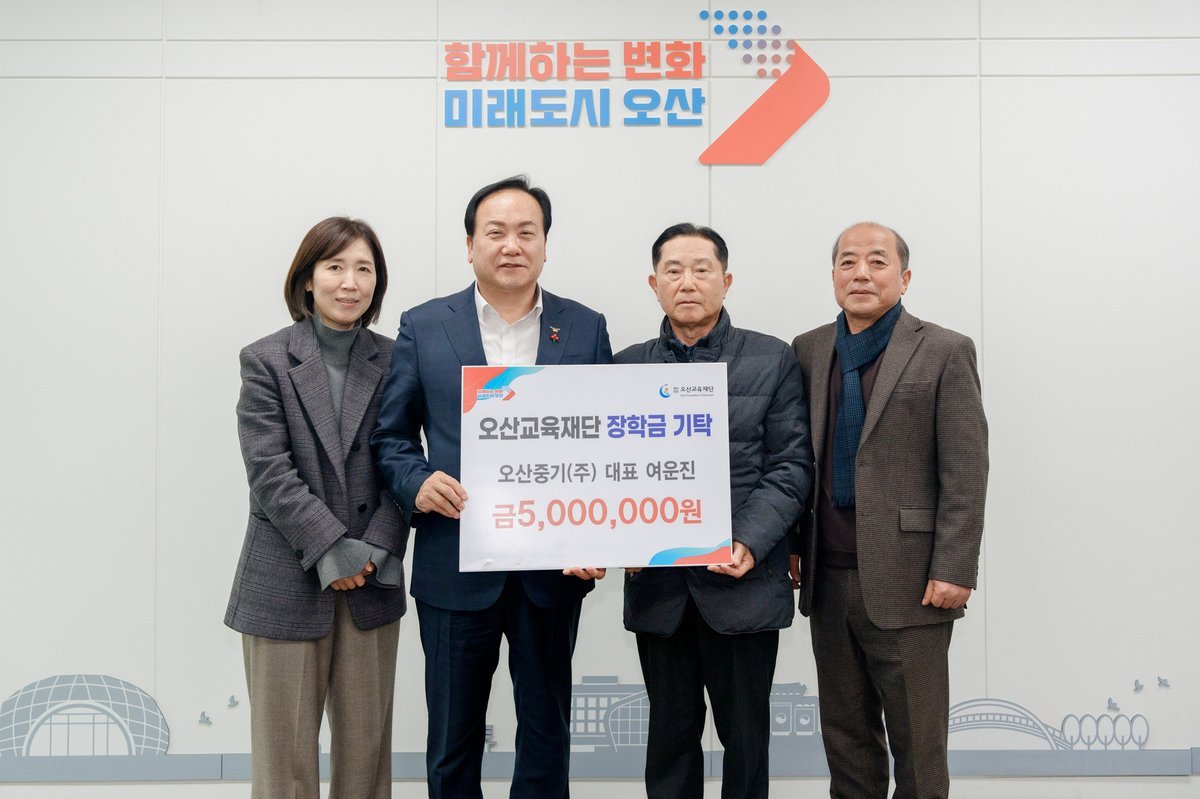 여운진 오산중기㈜ 대표는 “그동안 저소득 취약계층을 중심으로 나눔을 이어왔는데, 이번에는 오산의 미래를 이끌 다양한 분야의 우수 학생들을 지원하게 되어 더욱 뜻깊다”며 “앞으로도 지역사회와 함께 성장하는 기업이 되도록 노력하겠다”고 말했다.