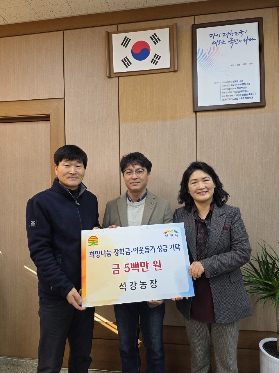 이천시 대월면 석강농장, 희망나눔 장학금·이웃돕기 성금 500만원 기탁 (이천시 제공)