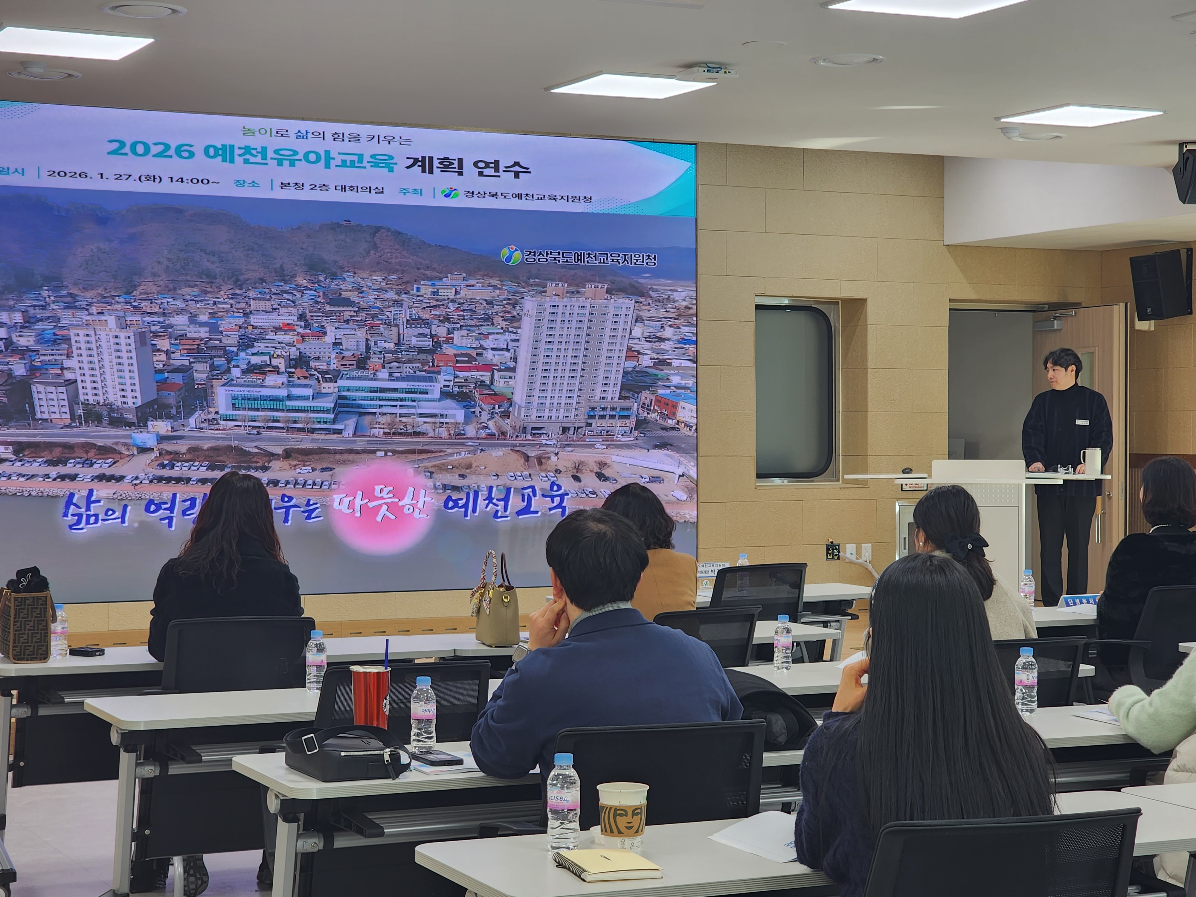 □ 경상북도예천교육지원청(교육장 김성중)은 1월 27일(화) 예천교육지원청 대회의실에서 관내 유치원 원감 및 교육과정 담당 교사 17명이 참석한 가운데 2026학년도 예천유아교육 계획 설명회를 개최하였다.