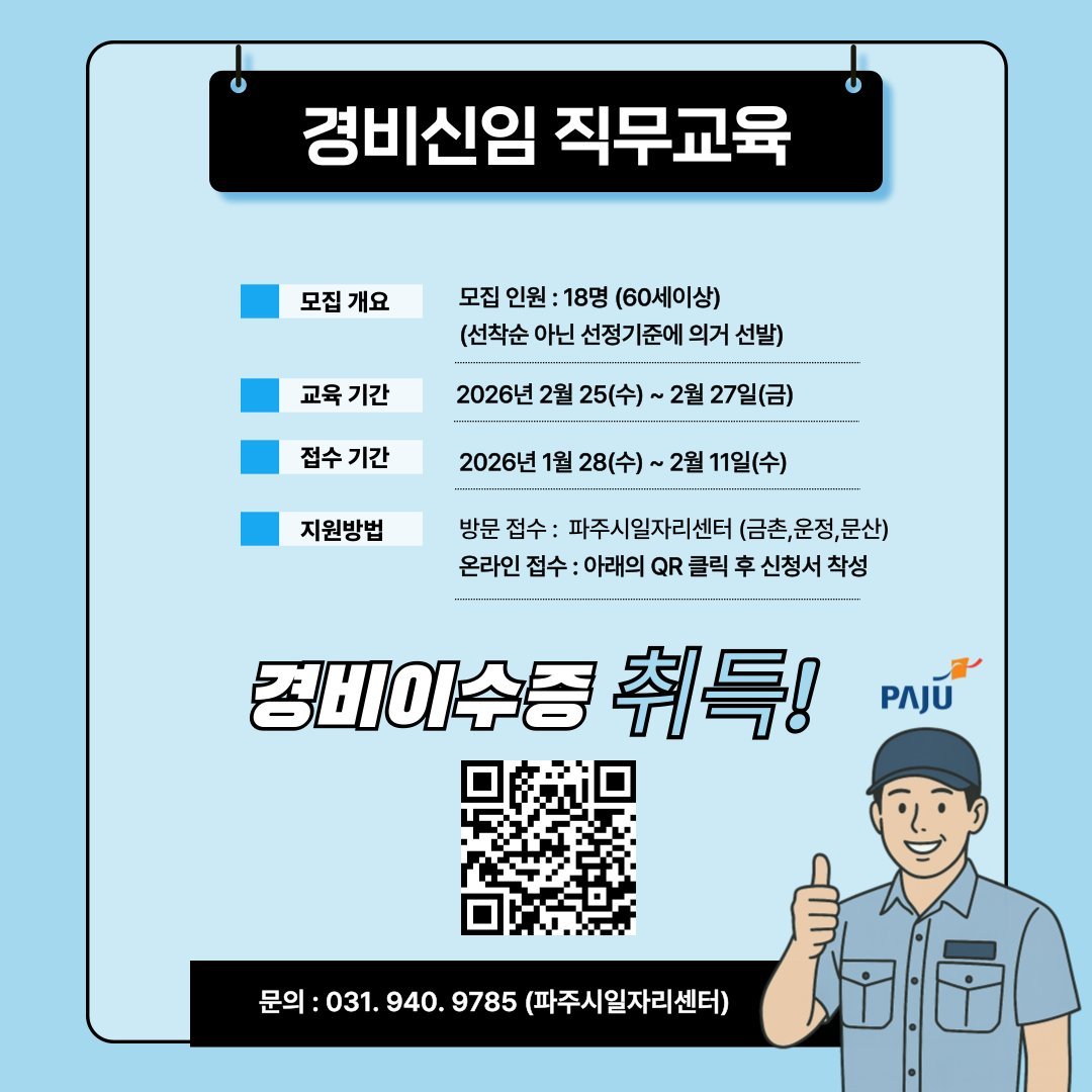 파주시, '경비 신임 직무교육'참여자 모집 (파주시 제공)