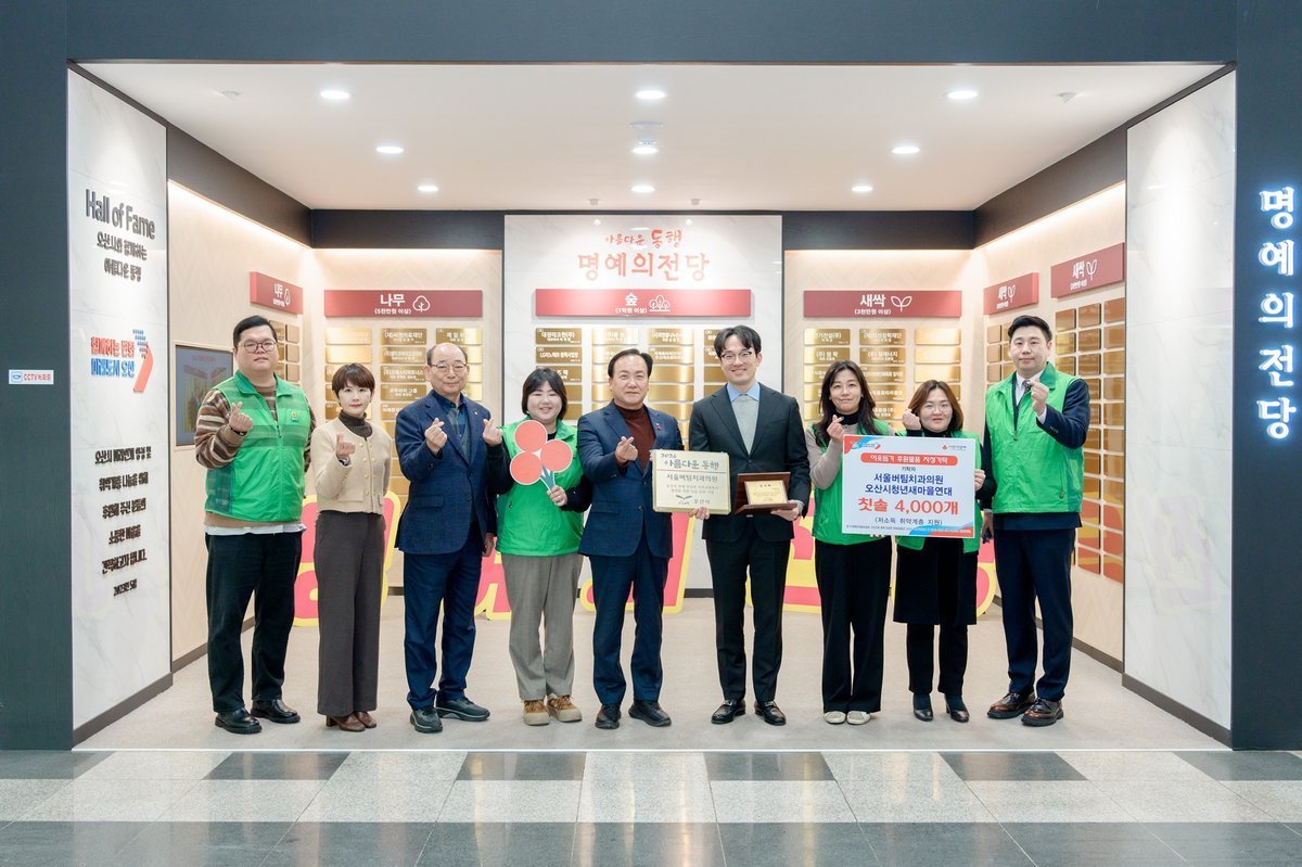 한편 오산동에 위치한 서울버팀치과의원은 지난 2023년부터 오산시새마을청년연대와 연계해 총 3차례에 걸쳐 성인용 칫솔 1만2000개를 기탁했으며 후원품은 관내 취약계층 어르신들의 구강관리 지원에 활용됐다.