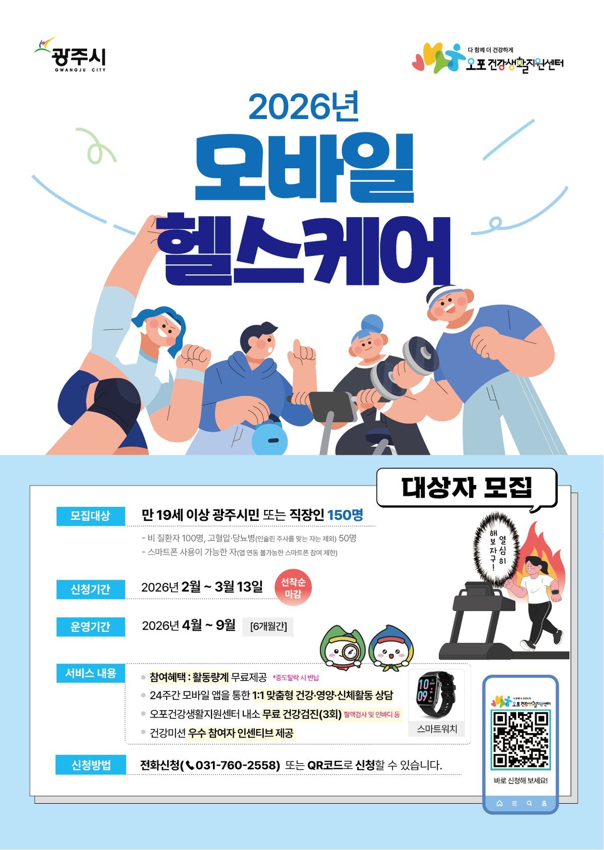 [금요저널] 광주시 보건소는 시민의 건강 증진과 만성질환 예방을 위해 '2026년 이동통신 건강관리'사업 참여자 150명을 선착순으로 모집한다고 28일 밝혔다.