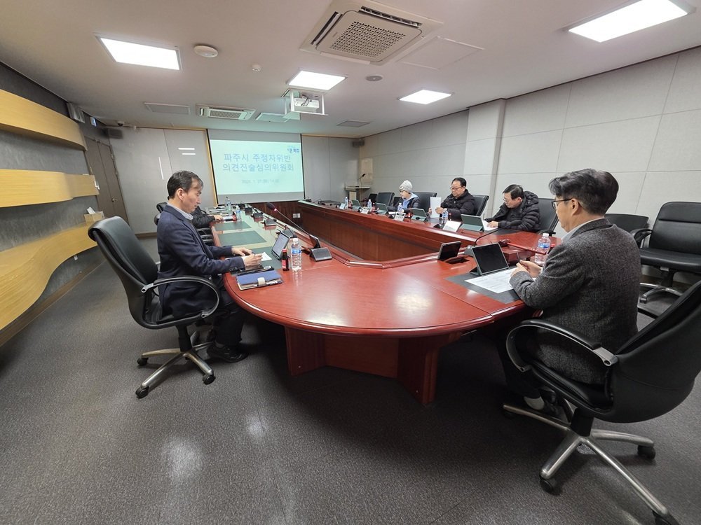매월 1~2회 정기적으로 개최되는 ’파주시 주정차위반 의견진술심의위원회‘는 교통 관련 단체 임원, 관계 공무원 등 총 7명으로 구성되어 있다.