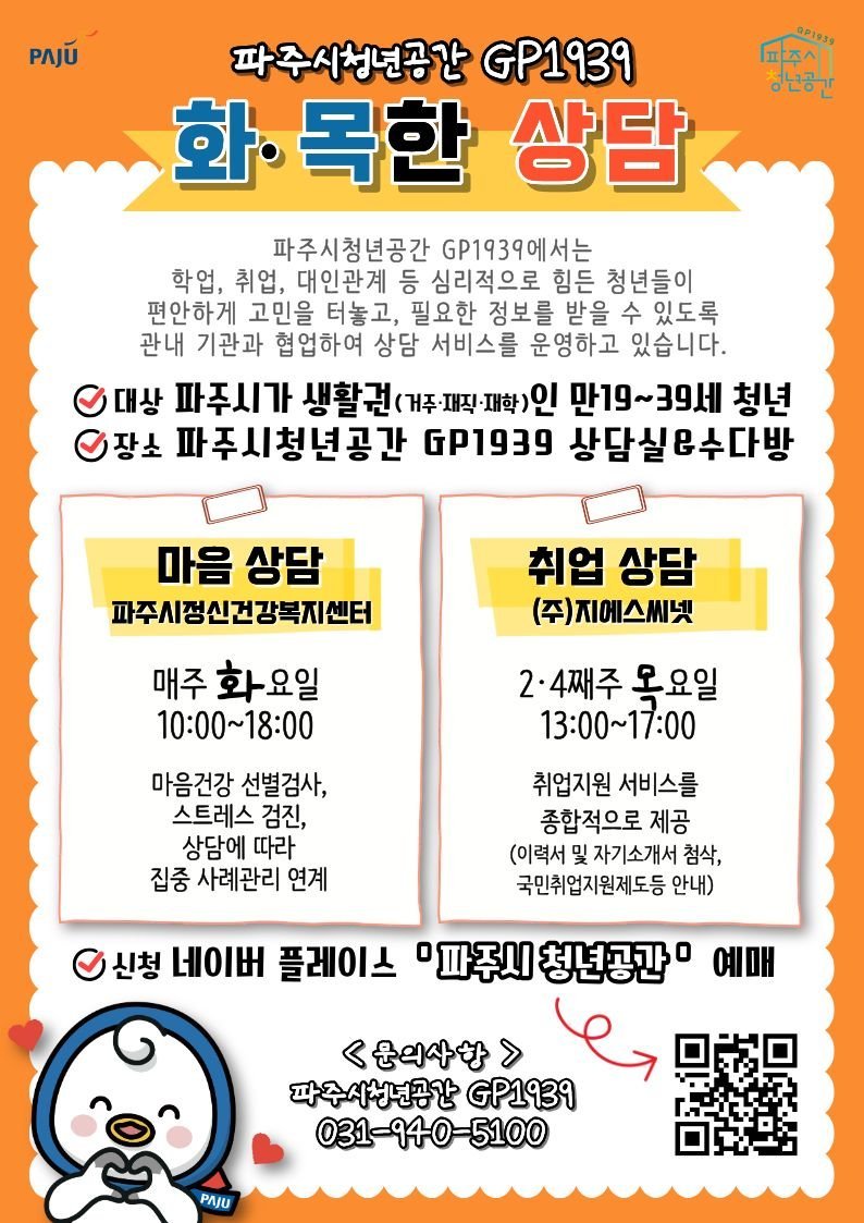파주시청년공간 지피 GP 화 목한 상담 참여자 상시 모집 포스터