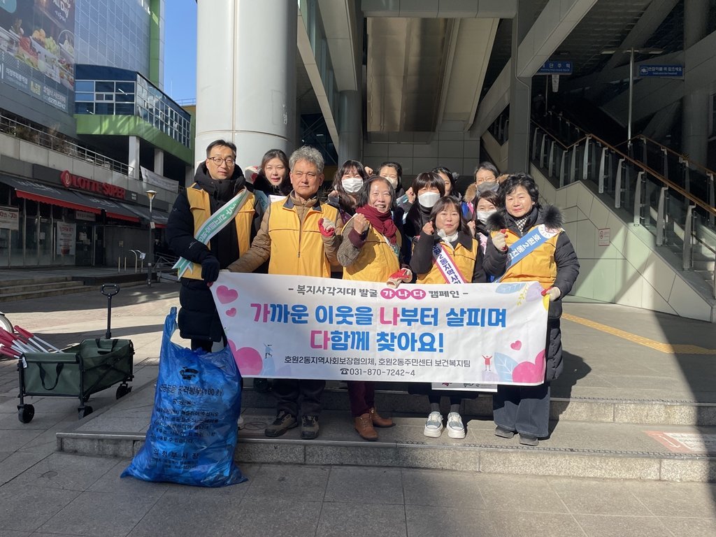 행사에는 호원2동 지역사회보장협의체 위원과 마스터플러스병원 봉사단 등 12명이 참여해 호원2동 관내 주요 도로와 주택가, 상가 밀집 지역을 중심으로 환경정화 활동을 펼쳤다. 이들은 쓰레기를 수거하는 한편, 복지 사각지대 발굴을 위한 안내문도 함께 배포했다.