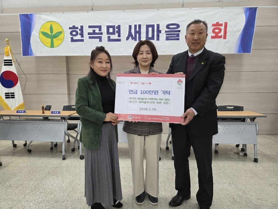 [금요저널] 현곡면 새마을지도자협의회 및 새마을부녀회는 1월28일 어려운 이웃들이 따뜻한 겨울을 보낼 수 있도록 불우이웃돕기 성금 100만원을 현곡면사무소에 전달하며 지역사회 나눔 문화 확산에 훈훈한 기운을 불어넣었다.