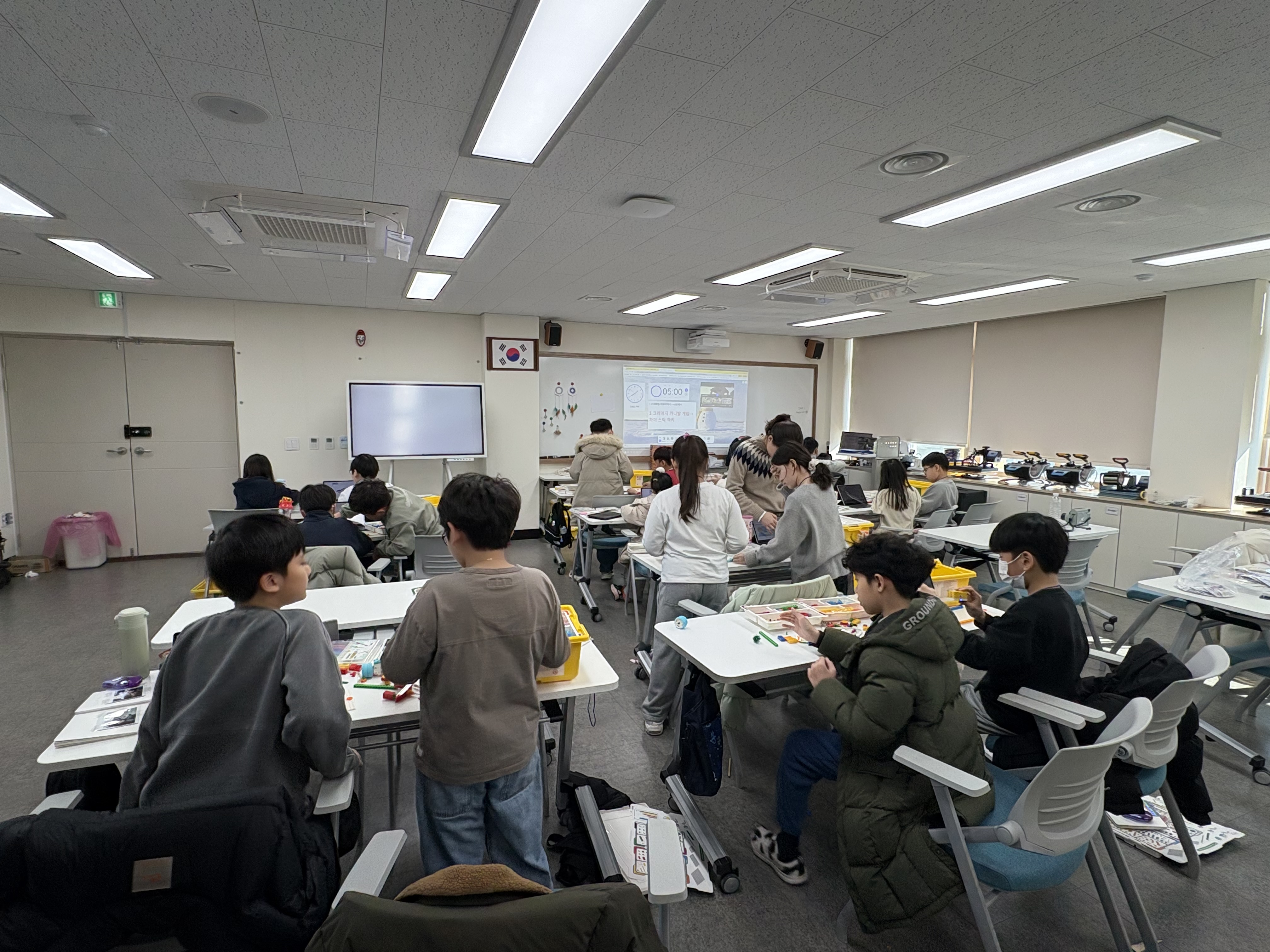 □ 5, 6학년은 ‘AI로봇과 수학의 만남’이라는 주제로 프로그램을 운영하였다. 1일차에는 AI로봇의 개념을 이해하고 로봇의 상하체 프레임을 조립하며 구조를 이해하는 시간을 가졌다. 2일차에는 AI로봇 솔로모드 및 다양한 기능을 체험하고, 코딩의 기초 및 심화 과정을 배워 미니 AI로봇 배틀을 운영했다.