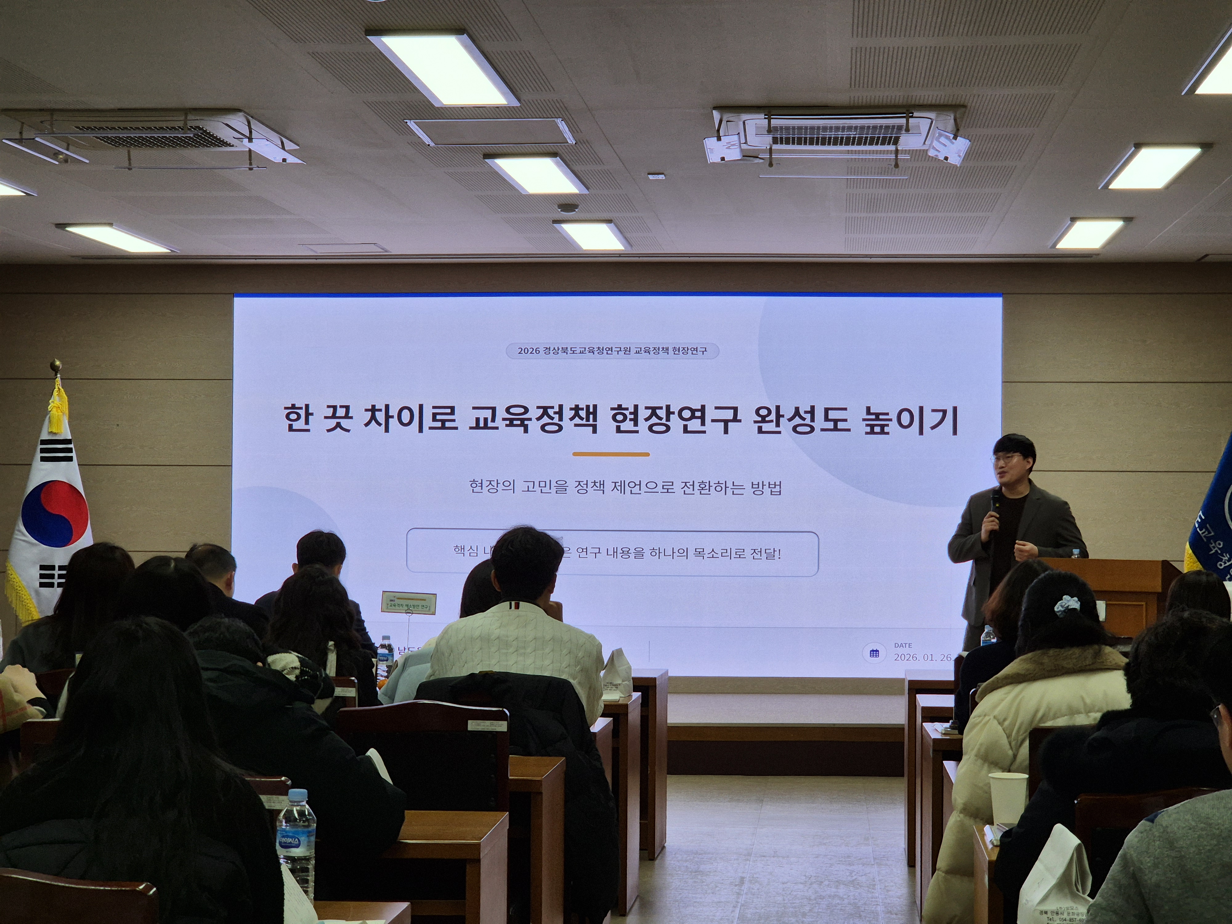 □ 경상북도교육청연구원(원장 이상진)은 26일 본원 대회의실에서 현장연구팀과 교육전문직원 등 70여 명이 참석한 가운데 ‘2026 교육정책 현장연구 이음(Connect) 워크숍’을 개최했다.
