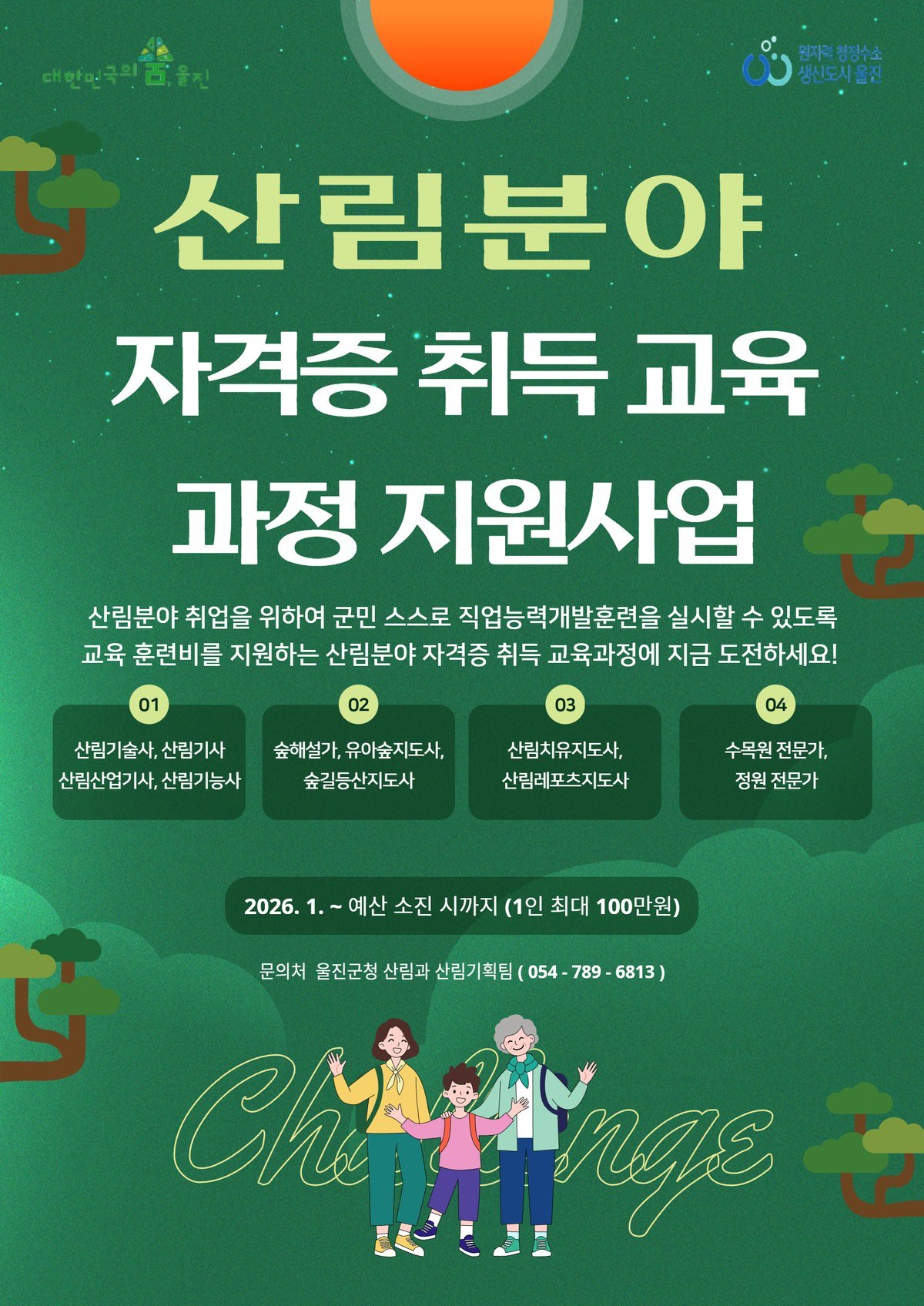 [금요저널] 울진군은 군민의 산림분야 취업지원을 위해 자기주도 직업능력개발훈련을 지원하는 산림분야 자격증 취득 교육과정 지원사업을 실시한다.