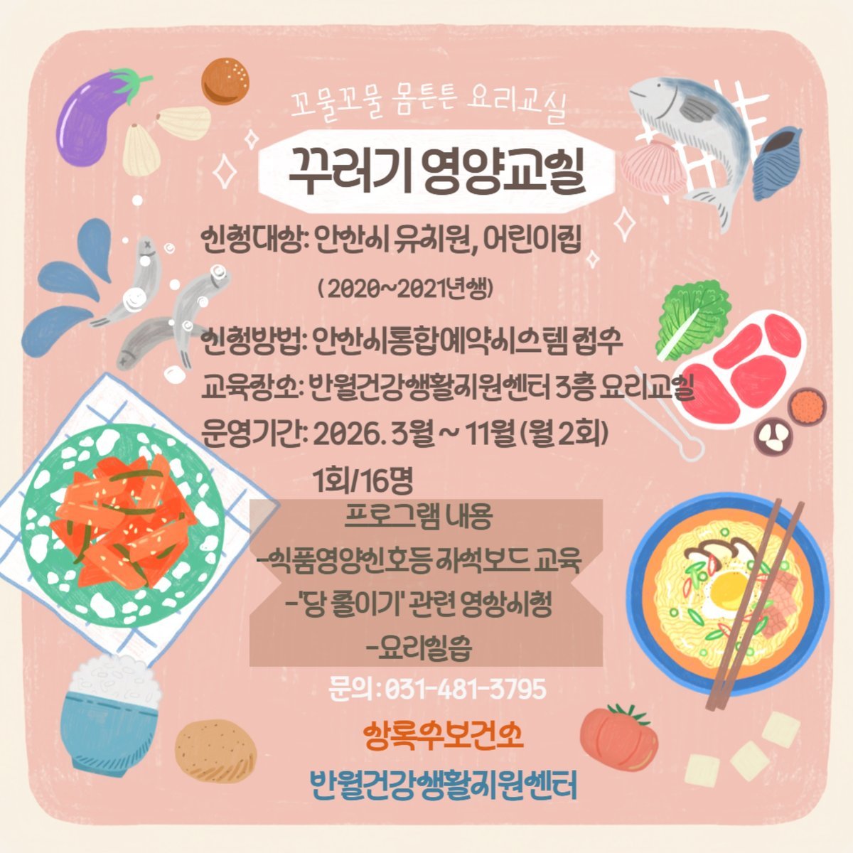 [금요저널] 안산시 상록수보건소 반월건강생활지원센터는 오는 3월부터 11월까지 관내 6~7세 아동을 대상으로 ‘꾸러기 영양교실’을 운영한다고 30일 밝혔다.