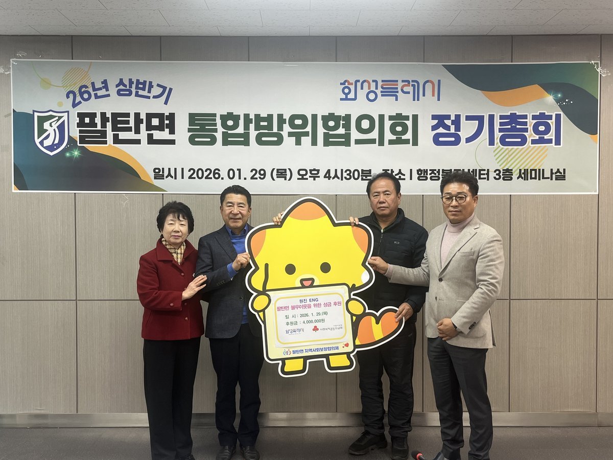 이동화 팔탄면 지역사회보장협의체 위원장은 “이번 후원으로 마련된 자원이 지역사회 복지 향상에 큰 역할을 할 것 ”이라며 “앞으로도 지속적인 협력 관계를 이어가기를 희망한다”고 말했다.