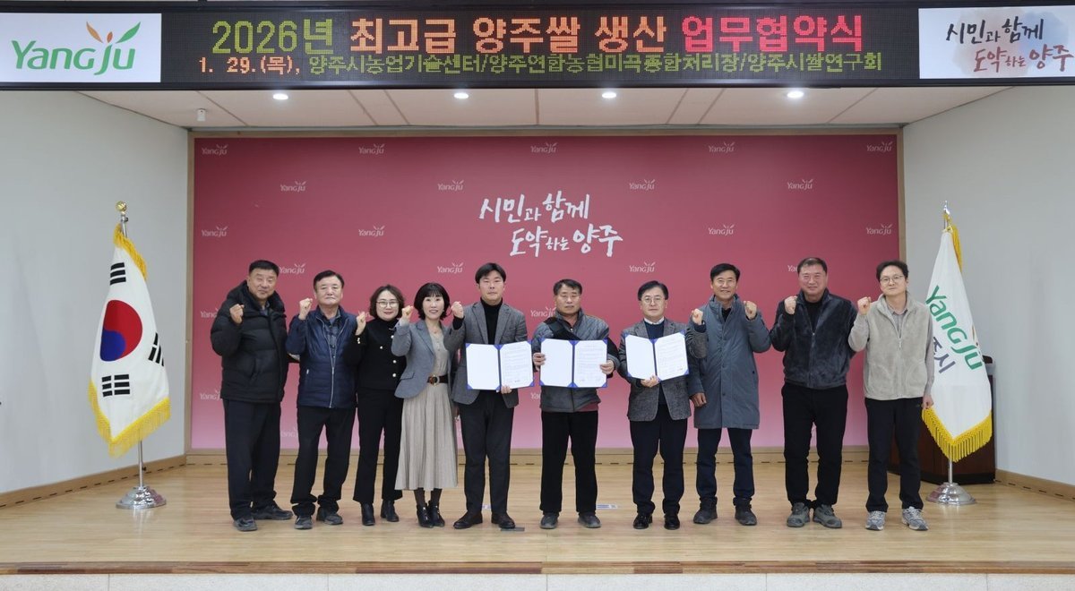 이번 협약을 통해 세 기관은 2026년 한 해 동안 △최고급 쌀 생산 매뉴얼 적용 △수확 후 철저한 품질 관리 및 브랜드화 △안전한 종자 확보 및 농산물우수관리 인증 확대 등을 공동으로 추진하며 양주 쌀의 경쟁력 강화를 위한 유기적인 협력에 나선다.