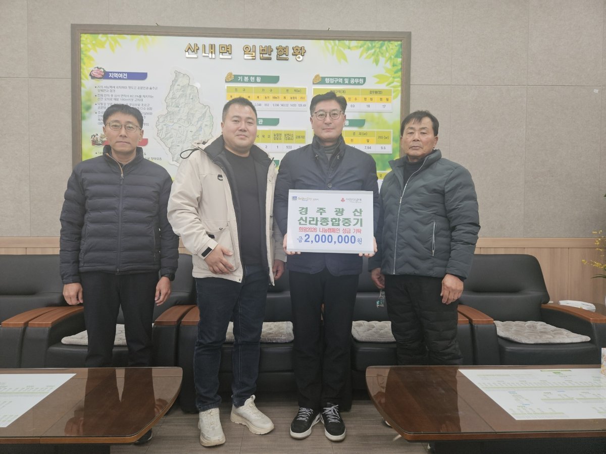 경주 산내면 경주광산·신라종합중기 대표 희망2026 나눔캠페인 성금 200만원'기탁 (경주시 제공)