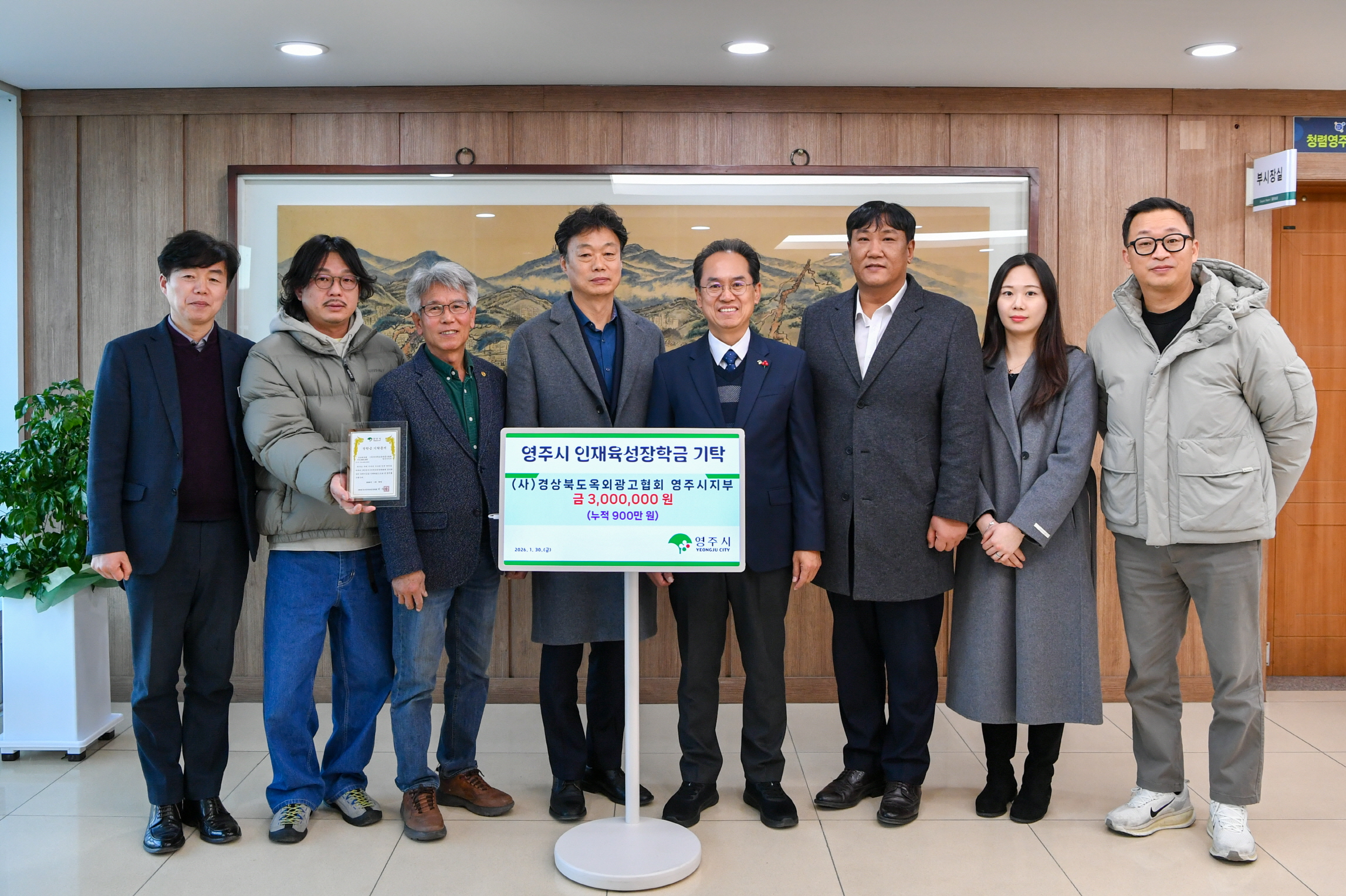 (재)영주시인재육성장학회(이사장 김자여)는 지난 30일 경상북도옥외광고협회 영주시지부(지부장 이상영), 풍기인삼홍삼상점가 상인회(회장 박진영), 이대성·황영숙 부부가 지역 인재 육성을 위해 각각 300만원, 100만원, 100만원의 장학금을 기탁했다고 밝혔다.