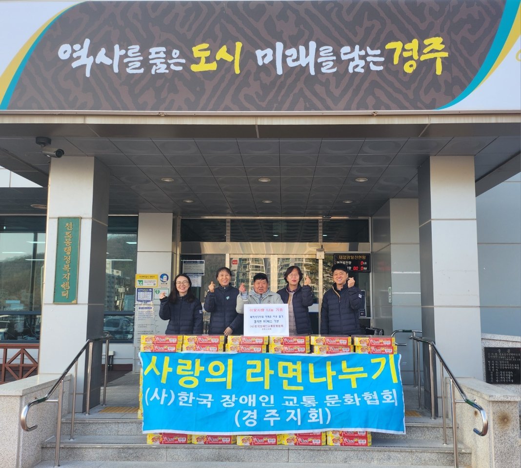 [금요저널] 사)한국장애인교통문화협회 경주시지회는 2026년 1월 29일 선도동행정복지센터를 방문해 관내 저소득 취약계층을 위해 컵라면 80박스를 기탁했다.