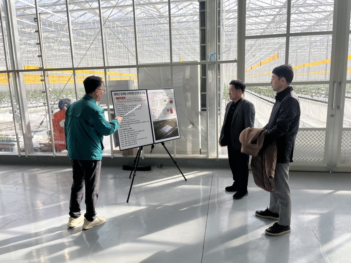 이번 방문은 지난해 말 준공된 봉화 임대형 스마트팜단지 토마토 정식상황과 에너지 시스템 등 시설가동 전반을 점검하고 향후 운영방향에 대한 의견을 듣기 위해 이뤄졌다.