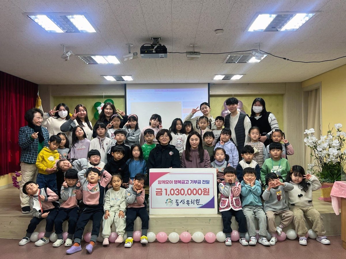 이번 기부금은 학부모와 교사, 유아, 지역 주민들이 참여한 ‘동산 플리마켓’을 통해 물건을 판매한 수익금과, 아이들이 직접 만들어 판매한 ‘붕어빵 기부 챌린지’수익금을 합산해 마련됐다.