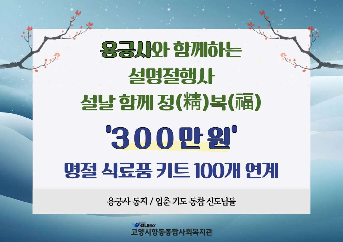 특히 용궁사에서 용궁사동지 및 입춘 기도 동참 신도들이 300만원의 후원금을 지원하고 레토르트 국, 과일 등 명절 식료품을 제공함으로써 취약계층의 경제적 부담을 완화하고 정을 나눠 풍성한 명절을 만들었다.