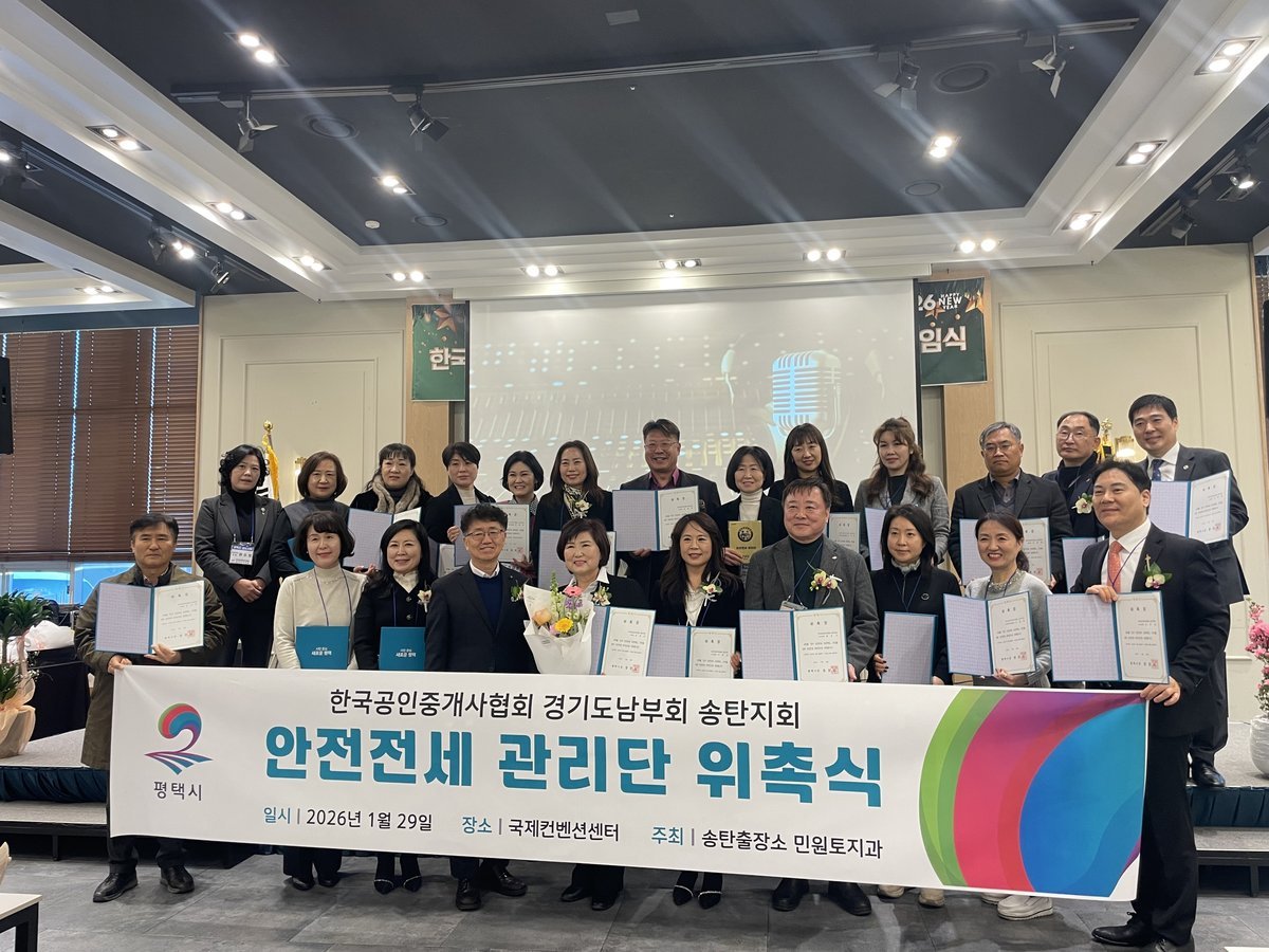 한편 송탄출장소는 이번 위촉식을 시작으로 지역 공인중개사 네트워크와의 긴밀한 소통을 강화하고 전세 사기 근절을 위한 실효성 있는 시책을 발굴해 신뢰받는 부동산 중개 문화를 정착시켜 나갈 계획이다.