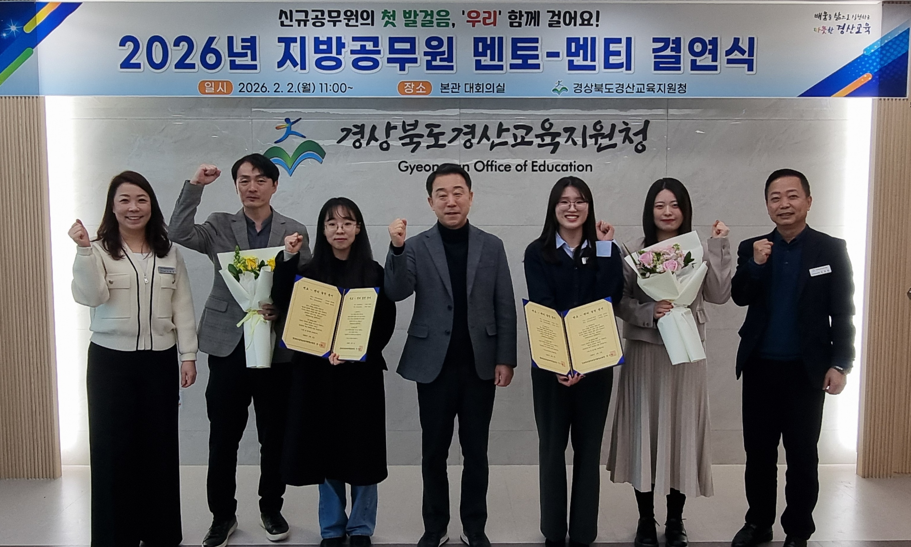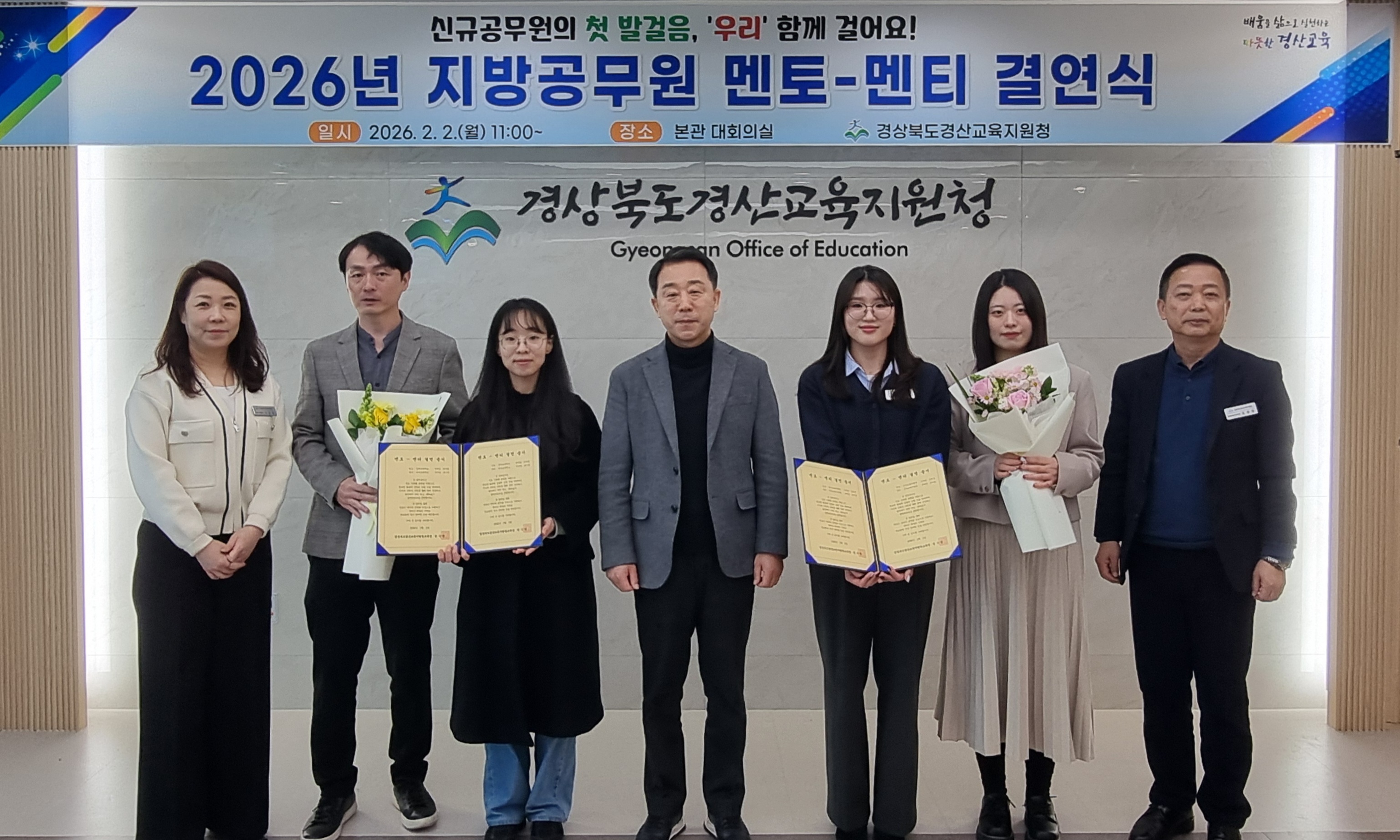 □ 경산교육지원청 정수권 교육장은 2일(월) 오전 11시부터 교육지원청 5층 대회의실에서 신규 공무원 2명과 선배공무원들이 참석한 가운데 지방공무원 후견인제(멘토-멘티) 결연식을 개최했다.