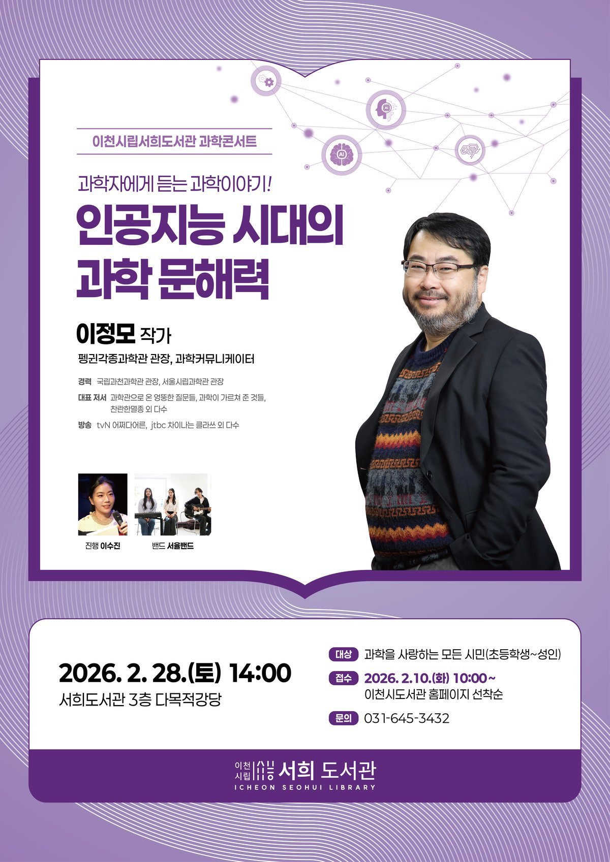 서희도서관, 과학콘서트에 이정모 작가 초청… 인공지능 시대의 과학문해력 (이천시 제공)