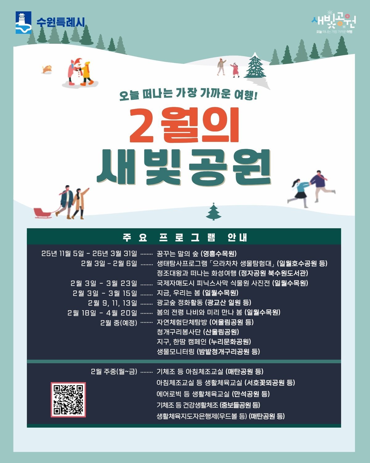 [금요저널] 수원특례시가 2월 한 달간 가까운 공원에서 즐길 수 있는 생태·환경·생활체육 프로그램을 운영한다.