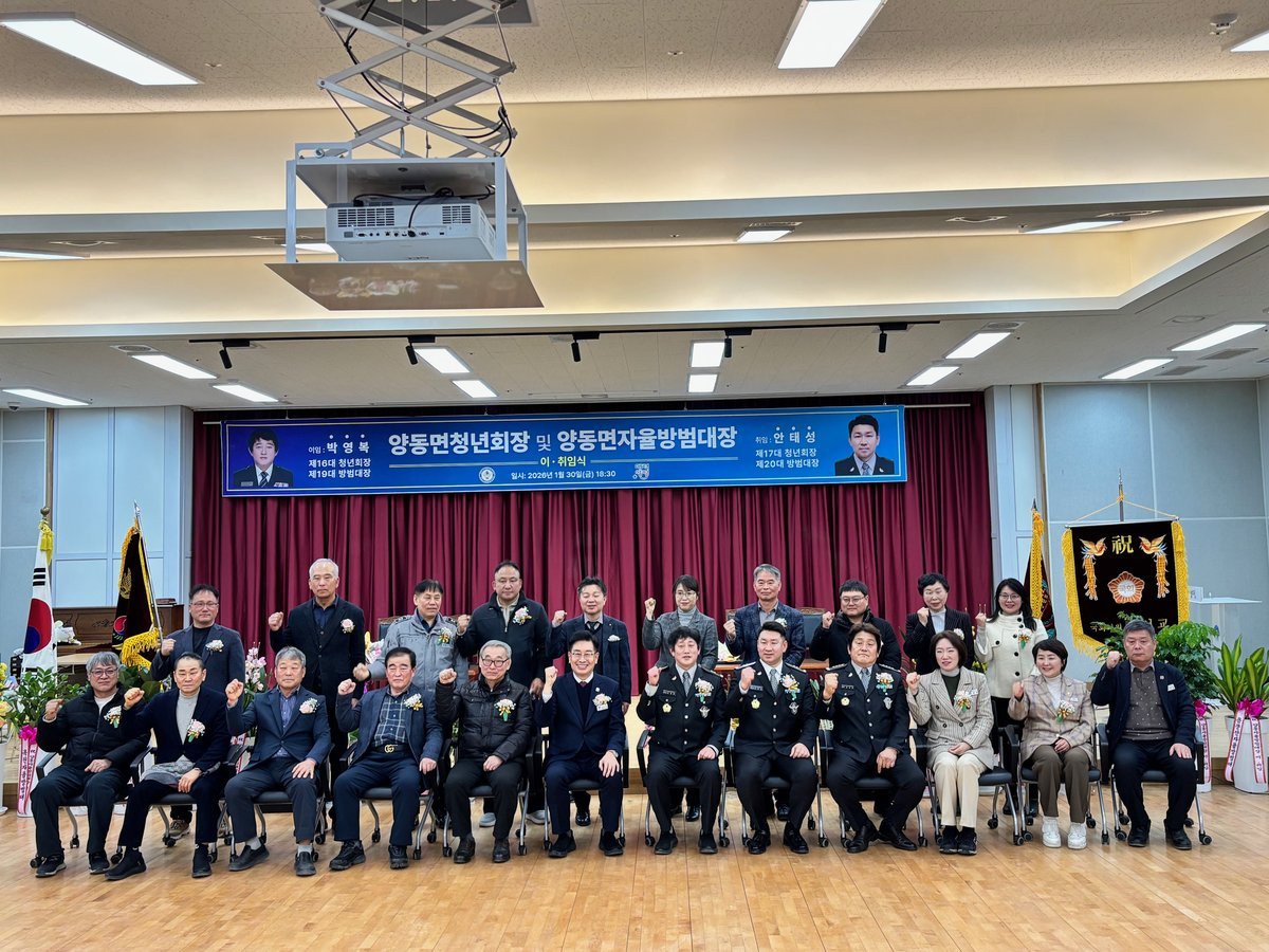 양동면 청년회와 자율방범대는 이번 이·취임식을 통해 그동안 지역 봉사와 야간 순찰 등 치안 협력 활동에 힘써온 이임 임원진의 노고를 격려하고 새 집행부의 출범을 공식화했다.
