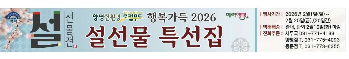 한편 양평 농특산물 설 선물전 택배 주문은 관내·관외 모두 2월 10일까지 가능하다.