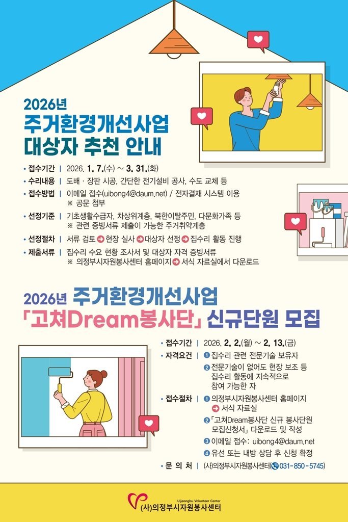 의정부시자원봉사센터, 2026년 '고쳐Dream봉사단'신규단원 모집 (의정부시 제공)