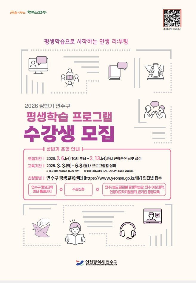 [금요저널] 연수구가 4차 산업혁명과 디지털 전환 시대를 선도할 구민 역량 강화를 위해 ‘2026년 상반기 평생학습 프로그램’수강생을 모집한다.