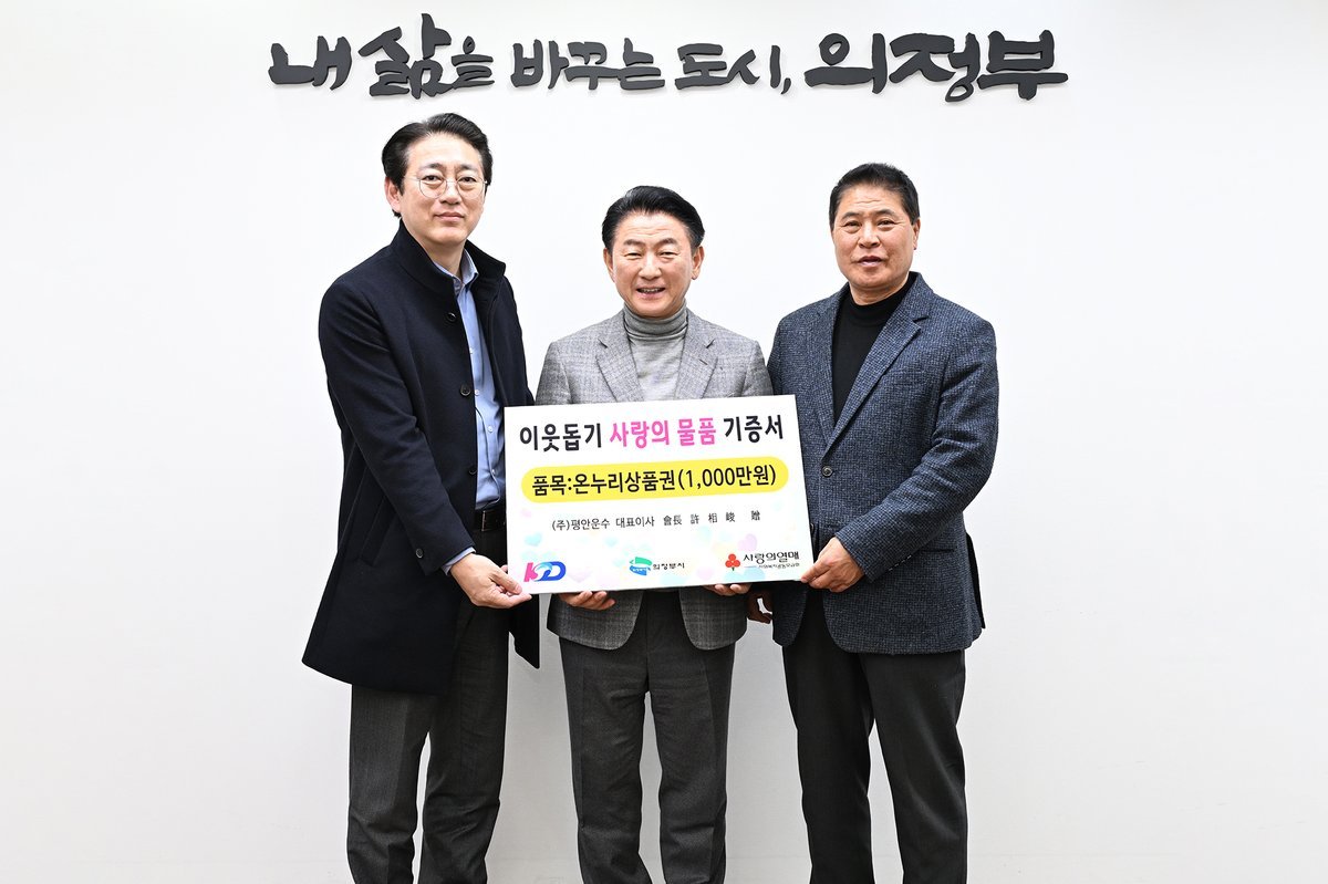 의정부시, KD운송그룹 설맞이 이웃돕기…온누리상품권 1천만원 기탁 (의정부시 제공)