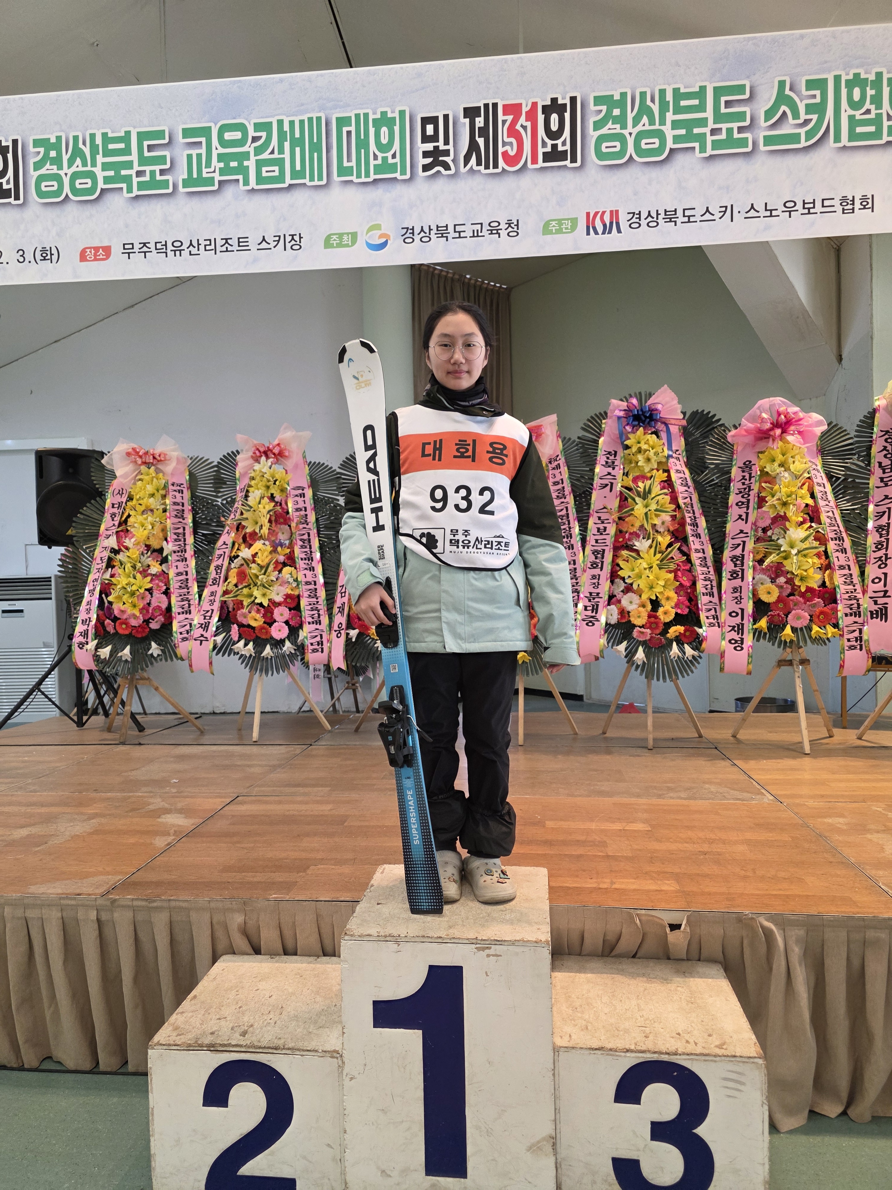 ▣ 김윤서 학생은 겨울방학 동안 하이원스키장에서 김민성 레이싱스쿨에 입문해 꾸준하고 성실하게 훈련에 임했다. 지난해 같은 대회에서 2위를 기록하며 아쉬움을 남겼으나, 올해는 한 단계 성장한 기량으로 당당히 1위에 오르며 우승의 기쁨을 누렸다.