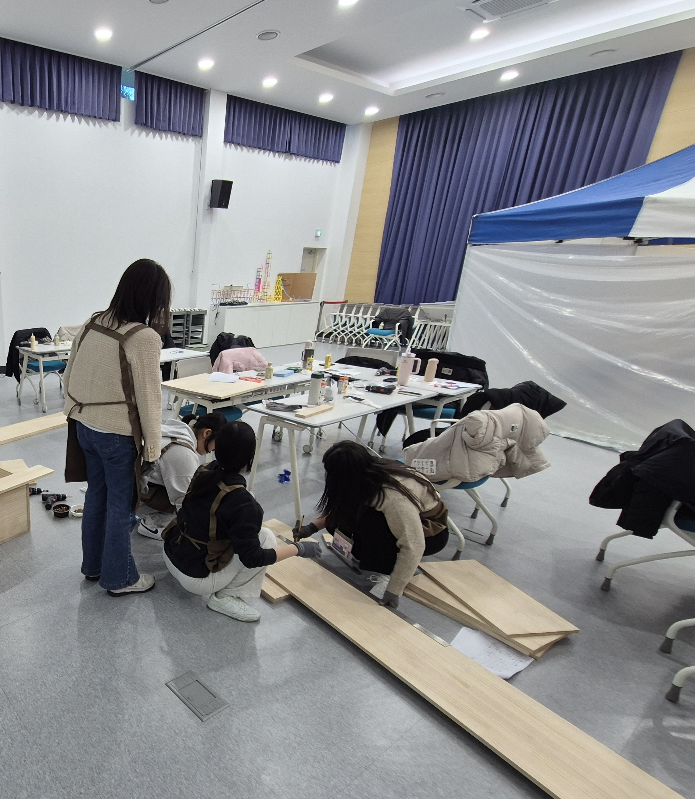 □ 이번 겨울방학 캠프는 사제동행으로 교사와 학생들이 함께 팀을 이루어 직접 수학 의자를 설계하고 제작하는 프로젝트형 체험 프로그램으로 기획되었다. 단순한 조립으로 그치는 수업이 아니라 코딩과 3D디자인 프로그램을 통해 피타고라스의 원리를 직접 증명해보고 직각삼각형 모양을 3D로 구현해보았다. 또한 친구들과 함께 의사소통하는 과정에서 사고력, 창의력, 문제해결력을 자연스럽게 신장시킬 수 있었으며 수학이 그 자체로도 재미있을 수 있음을 느끼도록 하였다.