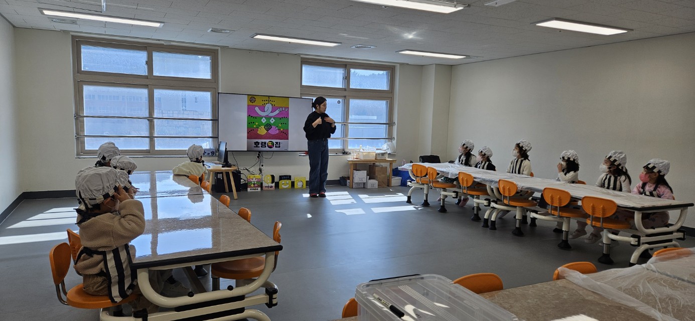 □ 체험활동은 서현 작가의 그림책 '호랭떡집'을 중심으로 진행되었다. 유아들은 먼저 작가의 다른 작품들을 살펴보며 작가만의 상징색인 노랑색과 특징적인 캐릭터들을 찾아보는 시간을 가졌다. 이어서 '호랭떡집'의 표지를 탐색하며 이야기에 대한 호기심을 키운 후, 염라대왕이 사는 지옥까지 떡케이크를 배달하는 흥미진진한 이야기에 빠져들었다.